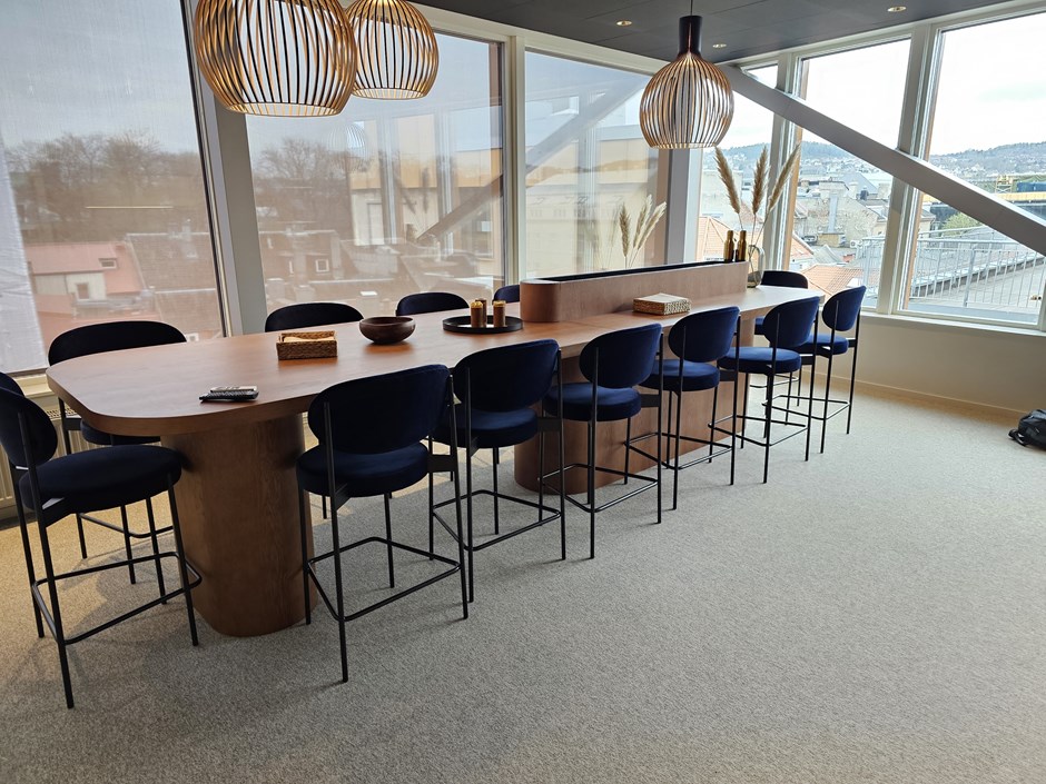 Møtebord med plantekasse i beiset eik finer. Levert hos Formue via vår kunde Input Interiør.